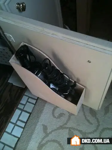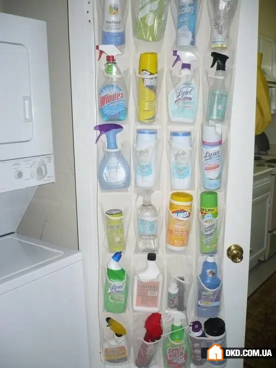 27. 洗发水和卷发棒可以方便地安装在衣柜门内任何合适的支架上,或使用塑料纸巾盒。