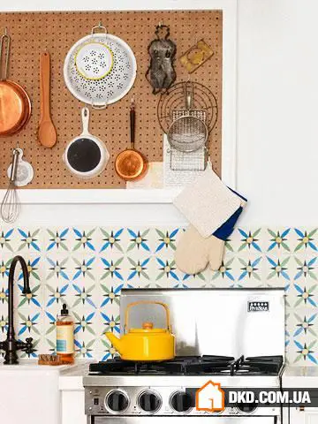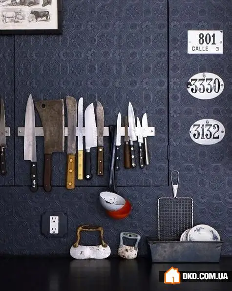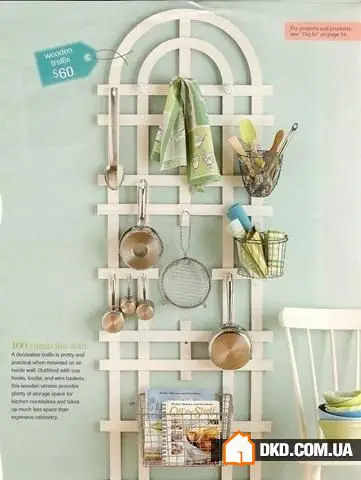 8. 利用墙壁悬挂盘子。这里还有另一种金属格栅的使用方法。