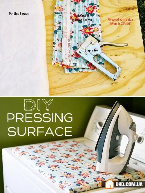 34. 使用布料、木板和订书机在洗衣机上制作一个方便的熨衣板。告别那些让你不知道放在哪里的不舒服的熨衣板。