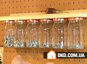 40. 分类螺栓、钉子和螺母或其他小物品并将其存放在透明罐中。如果您将盖子贴在架子上,所有罐子都会始终可见。