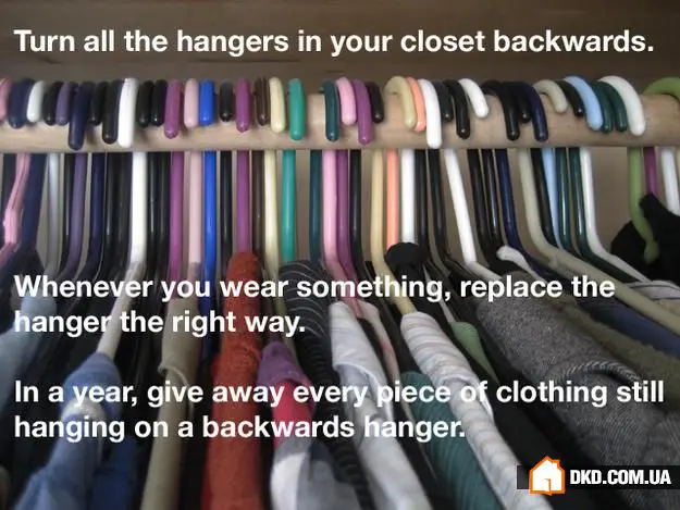 16. 一个好主意是每次穿完衣服后将衣架移到左侧。过一段时间,你会发现不常穿的衣服收集在衣柜右侧。只需把它们移到别处即可。