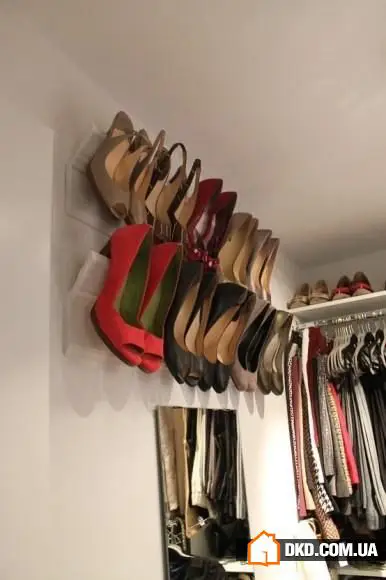 51. 剪掉鞋架的一部分并将其安装在衣柜内部以增加存储空间。这不是一个非常美观的解决方案,但不会被看到,也不会在衣柜里散乱。