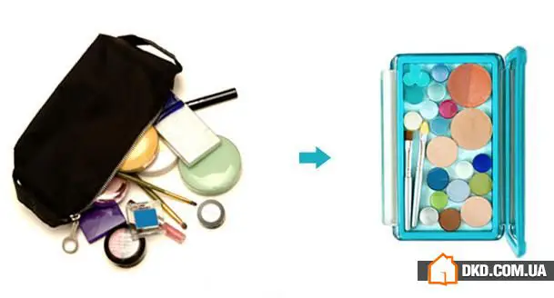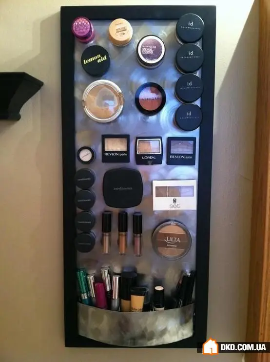 33. 化妆品的另一种磁性存储变体。购买一组小磁铁并将其粘贴到化妆品包装盒上。