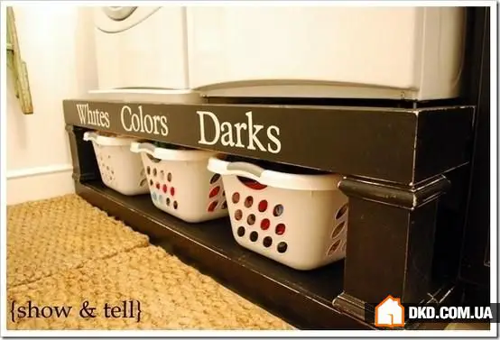 36. 制作一个脏衣服箱子的架子并将其安装在洗衣机下方。