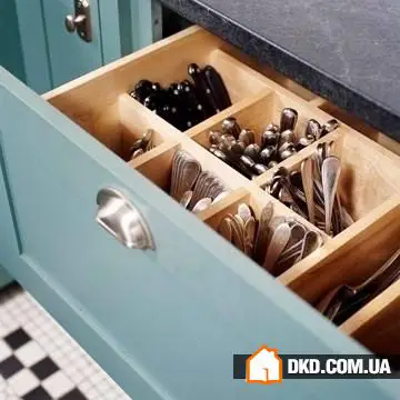 9. 利用厨房橱柜的深抽屉进行垂直餐具存储。