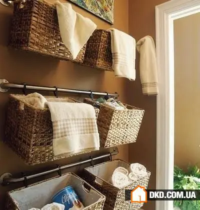 32. 在墙上挂篮子,以便轻松取用毛巾和淋浴用品。