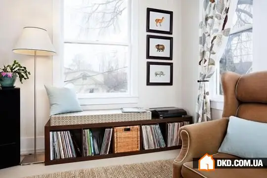 48. 唱片可以方便地放在窗台下的中空长凳中。