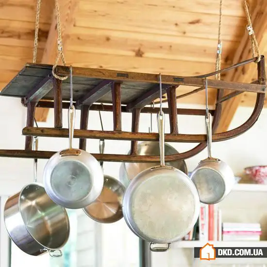 37. 为了时尚且方便地储存外衣,可以在天花板上安装梯子并配备挂钩。