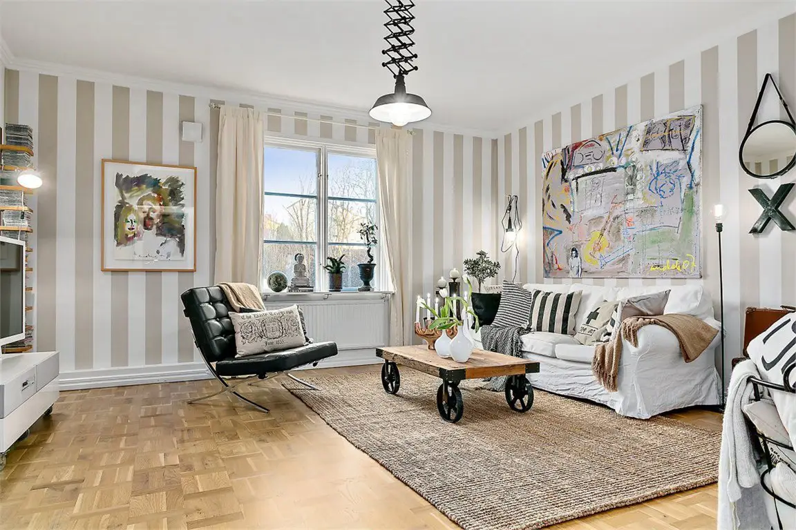餐厅翻新的最后一步是一块带有几何图案的黑色和白色大地毯,定义了室内中心区域。因此,餐厅翻新并未花费太多时间,结果是由于明亮的配色方案、镜子和中央空间,其内部显得更大。得益于DIY家具和装饰品,这对夫妇成功大大节省了翻新预算。