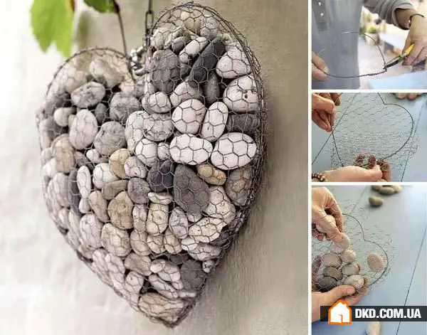 10.由金属网格和石头构成的心形.