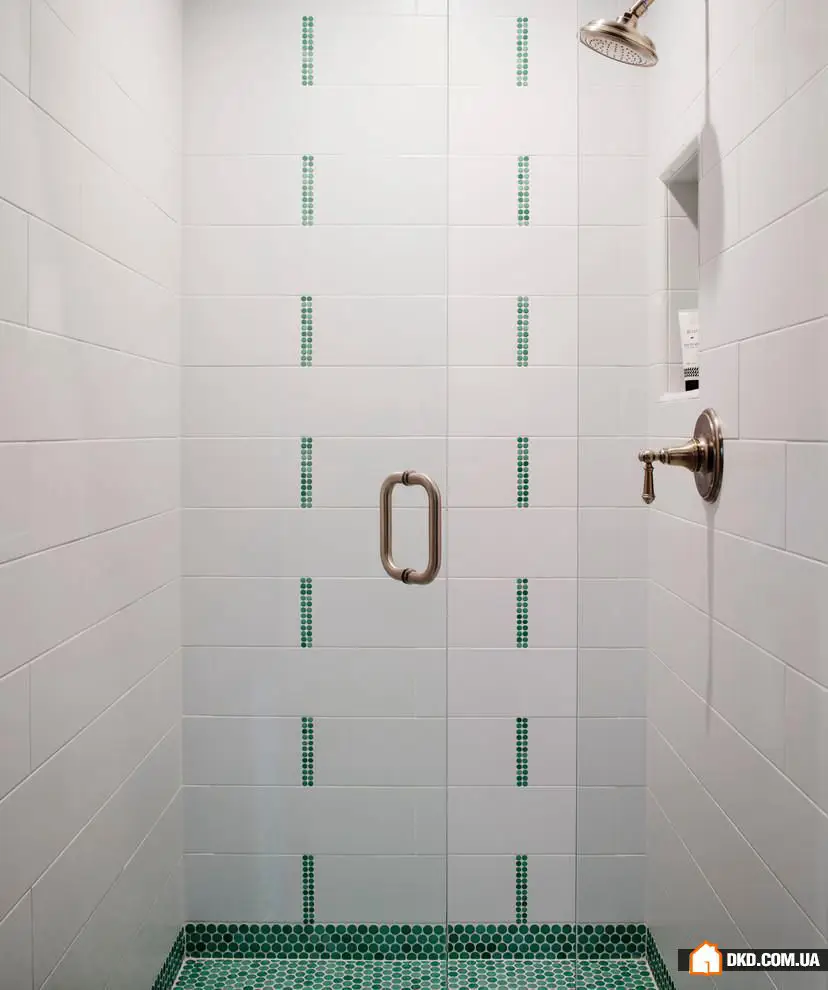 8. 用单一色调突出。为了在明亮和柔和色彩之间取得最佳平衡,使用饱和蓝色或绿色色调来强调大型装饰元素,如淋浴区或地板。这种风格适合冷静理性、不喜欢多余装饰的人,即使在浴室中也不停思考。