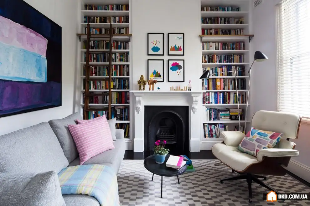 为装饰小客厅选择中性柔和的颜色,加入明亮的点缀。室内色调越亮,房间就越显得通风和宽敞。