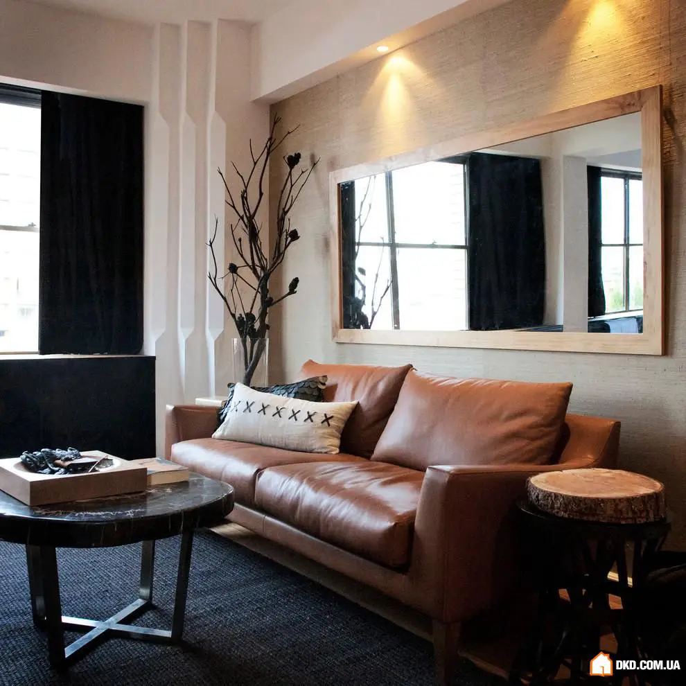 镜子是小房间最重要的元素。它们平衡光线过渡,非常适合光泽或皮质家具。
