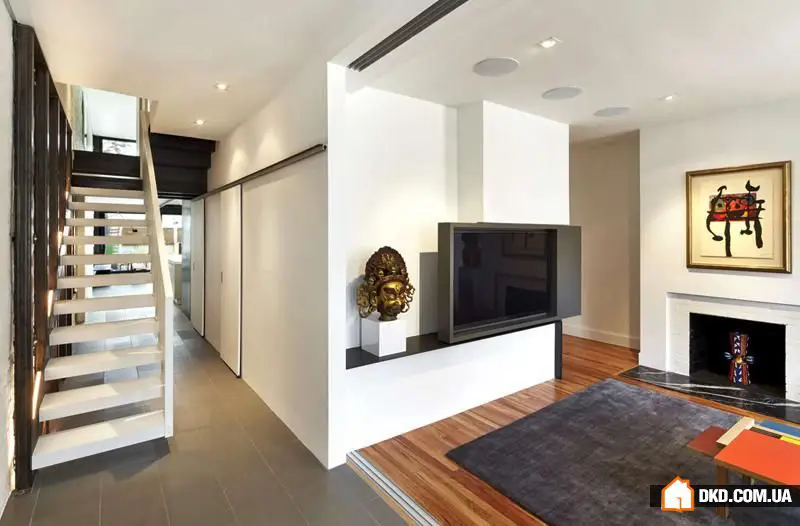对于苏珊和杰里米来说,这套房子主要是放松的地方,但同时必须提供足够的空间,以便在某一个晚上转变为充满活力的聚会场所。客厅中一楼和二楼之间的墙体被拆除,部分楼层隔断也被移除,从而形成一个宽敞、通风且充满光线的开放空间。