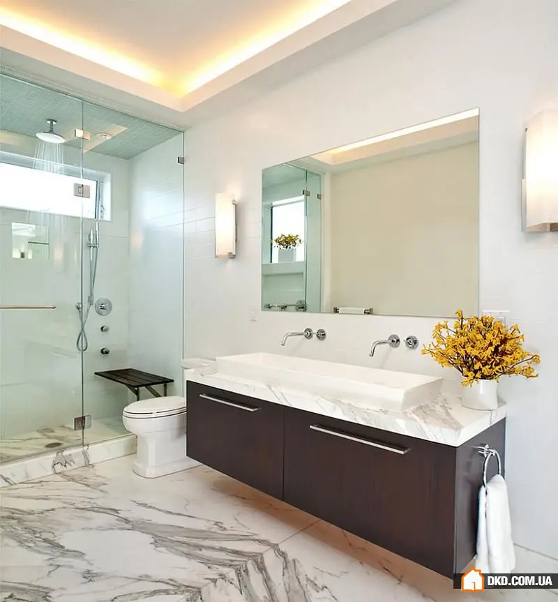 7. 灰色的五十种变化。这不是畅销书的标题,而是室内设计中最时尚的趋势——不仅适用于浴室,也适用于许多其他房间。如果您不确定完成色彩,选择灰色,您将不会出错!