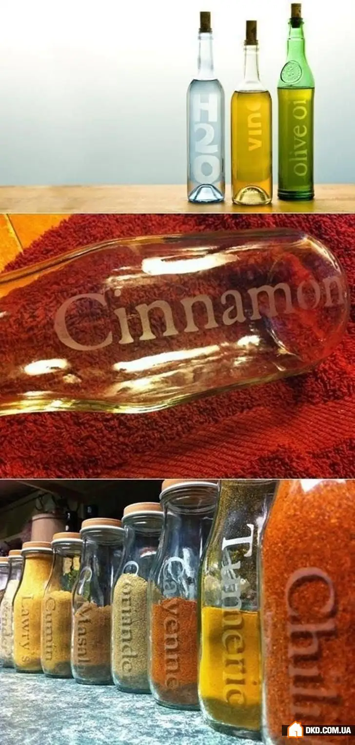 6. 让玻璃变得哑光并贴上标签来装液体。