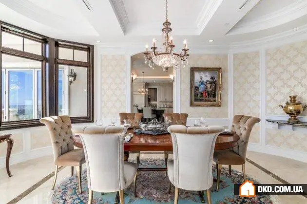 另一方面,餐厅不再仅仅是用于早餐、午餐和晚餐的专门空间。它是必需的功能之一。这个房间的另一个要求是确保您的客人在庆祝活动或活动中舒适地停留。在这种情况下,餐厅的室内设计具有关键重要性,因为它是塑造客人对你积极印象的主要因素,就像食物质量和餐桌氛围一样。最好让它温馨而优雅,为与客人交流营造愉快的氛围。实现这一点最简单的方法是选择宁静的传统设计。它在许多人中享有最高的受欢迎程度,不会引发负面情绪。此外,传统设计常常与“家”的概念联系在一起,自然为共度时光营造愉快的氛围。