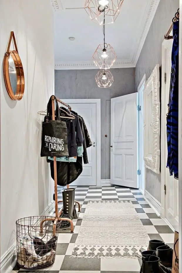 标准公寓的走廊无法拥有宽敞的尺寸或便利的布局。通常它们只是门和房间之间的一小块区域,或者是一条长长的狭窄过道。