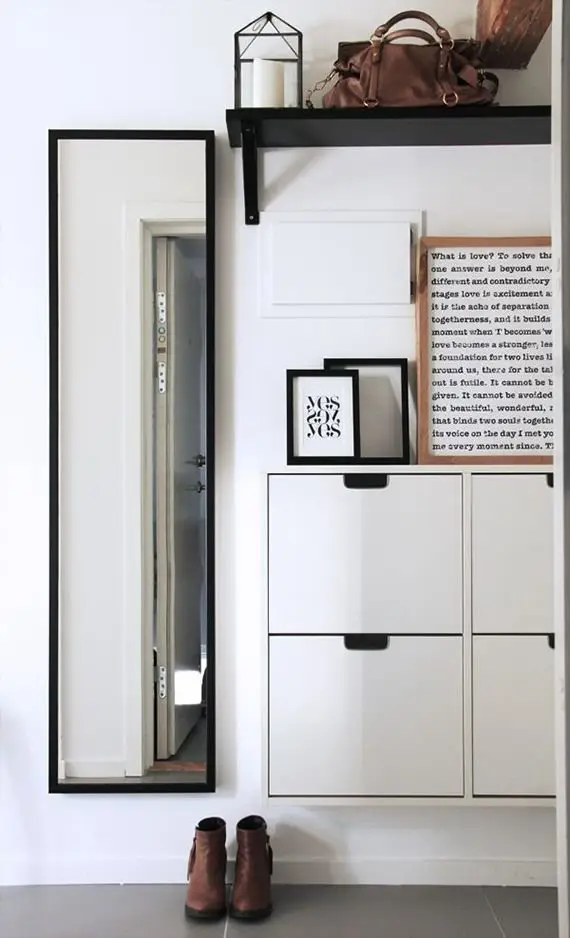 解决方案:鞋柜和鞋架将有所帮助。商店里有许多选择,包括悬挂式存储系统——它们节省一些有用的存储空间。整理走廊将变得容易得多。