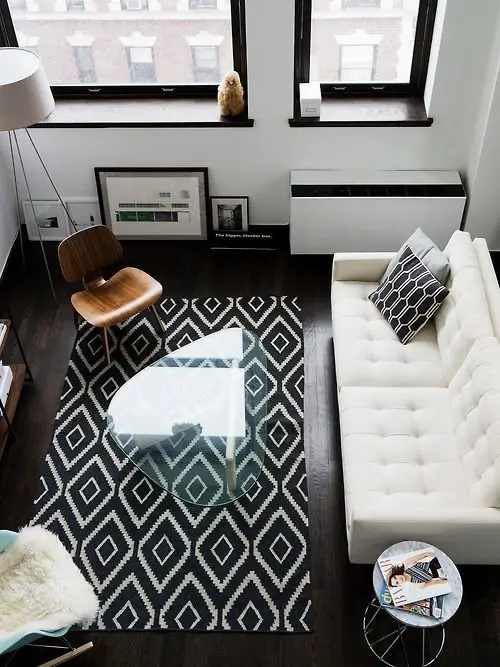 人们普遍认为地板上必须铺地毯:因为它能给室内带来舒适和温暖的感觉。但看看下面的照片——这种室内设计中裸露的地板难道不时尚吗?没有必要隐藏那些铺设成经典人字形图案的精美拼花木地板或木质板材的纹理。放弃地毯,享受极简主义。