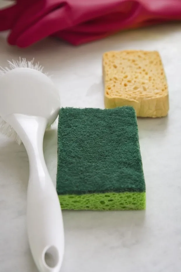 旧海绵和抹布是微生物的主要来源。它们应该定期更换,最好每3-4周换一次。为了尽量保持海绵干燥清洁,在清洗后可以用回形针固定住它。此外,你还可以在微波炉中加热海绵一分钟——不会有难闻气味或异味残留。
