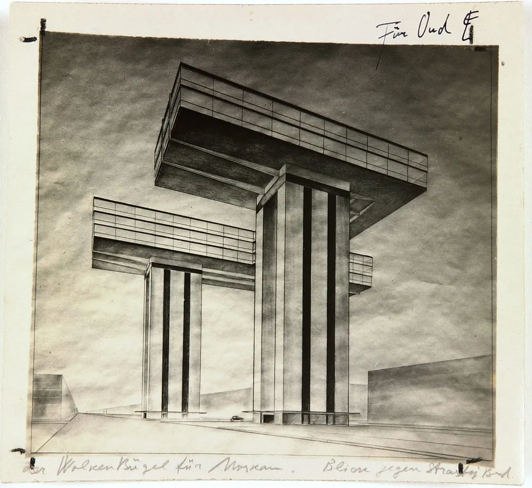 1923年,艺术家和建筑师拉扎尔·利西茨基为莫斯科提出了前所未有的“水平摩天大楼”。大型水平放置的行政大楼应被支撑在三腿结构上,高度达50米,内部设置电梯和楼梯间。通过两条腿,机构员工可以直接到达地铁站;第三条腿底部设置电车停靠站。利西茨基建议在大道与放射状街道交汇处(红场、尼基茨基门等)设置水平摩天大楼。