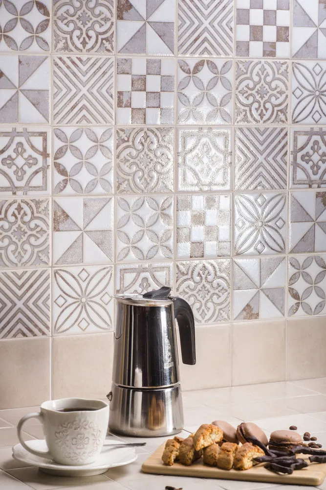 小规格瓷砖易于在彼此之间以及与其他规格组合。例如,您可以在一个设计中使用不同尺寸的元素:15×15 厘米的方形砖和 15×40 厘米的长方形砖,以及用于分隔瓷砖的边框或“铅笔”条。