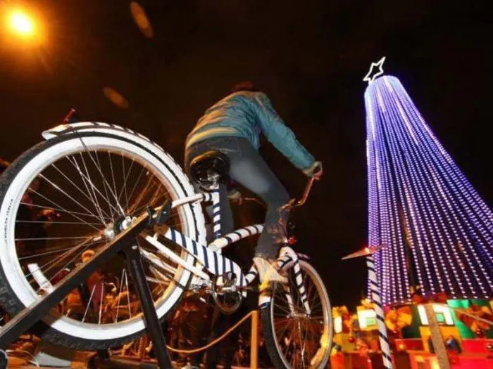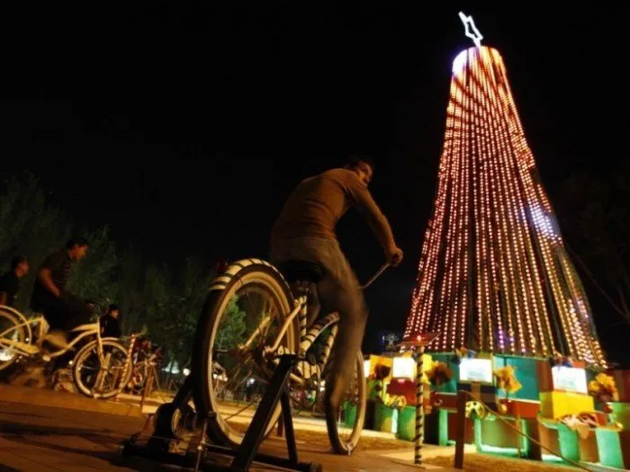 在墨西哥普埃布拉市,只有当有人踩踏板时圣诞树才会亮起。骑行的人越多,灯光就越明亮。