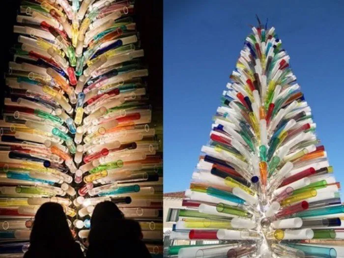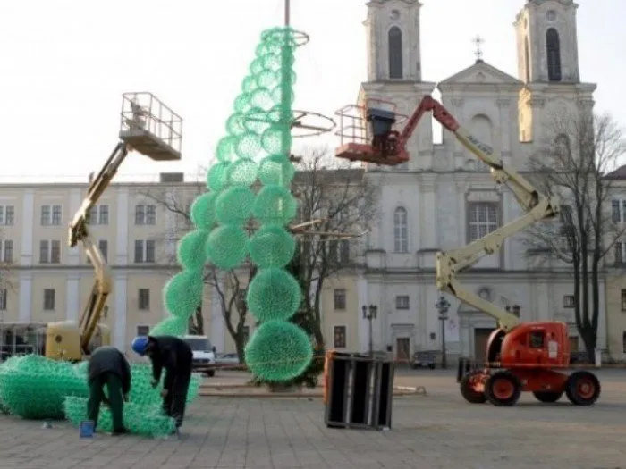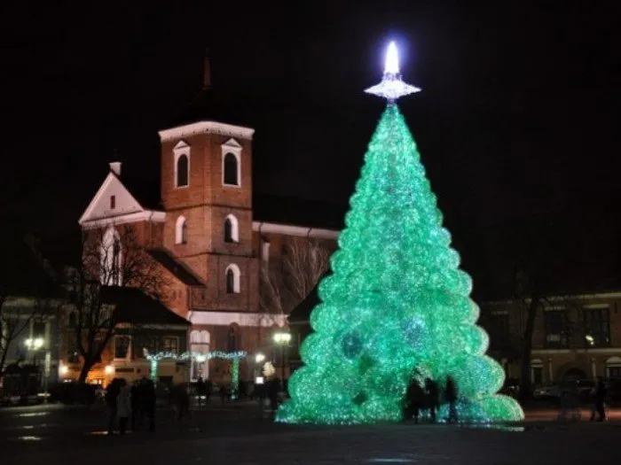 立陶宛城市考纳斯在2012年迎接新年时,用40,000个回收塑料瓶制成了一棵生态树。这棵树高13米。