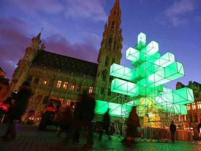 一座24米高的金属结构被木板和帆布覆盖,装饰有花环和LED灯。顶部设有一个观景平台,可俯瞰比利时首都。