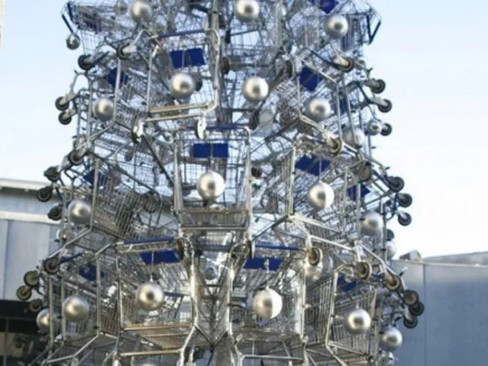 艺术家安东尼·施密特用购物车装饰了圣莫尼卡购物中心,制作了一棵十米高的树。建造这个结构需要86个金属篮子。这不是安东尼的首棵“篮子树”,他从2007年起就开始收集这类作品。