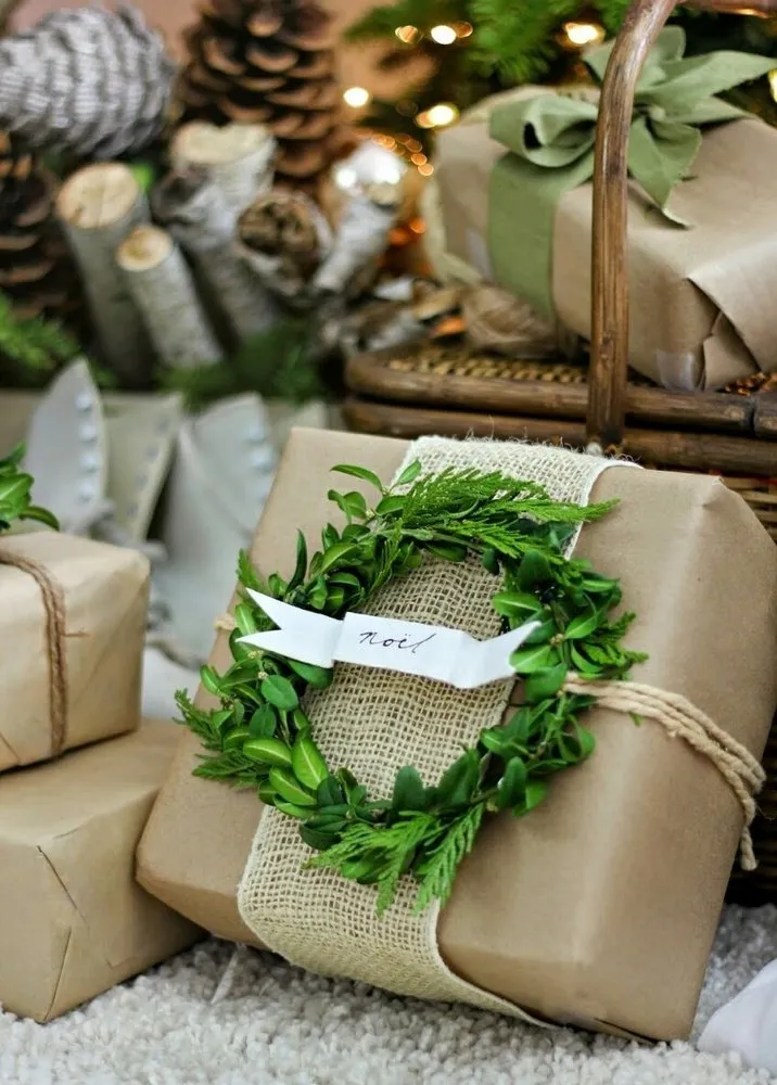 已经包装好的礼物可以用圣诞树枝、松果或鲜艳的丝带装饰。孩子们的礼物配上姜饼饼干或糖果会看起来很棒。