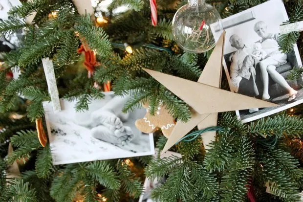 让节日更加明亮,可以在树上挂家庭照片。你甚至可以使用旧的圣诞卡片:在新年中怀旧感非常合适。