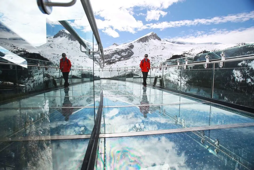 2. 加拿大冰川天空漫步在加拿大贾斯珀国家公园中,也有类似的观景平台。与"天空漫步"类似,冰川天空漫步同样悬于悬崖边缘,但只突出30米。平台固定在岩石峭壁上,由玻璃和钢缆加固而成。