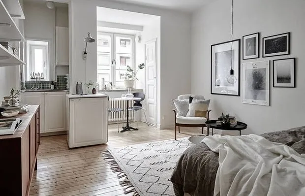 建筑师兼Flatsdesign建筑事务所创始人尤金妮亚·马特韦恩科建议让一面墙成为焦点:"将其涂成鲜艳的颜色,用一幅不寻常的画作装饰,把墙面和天花板的设计统一起来,并放置一个色彩鲜艳的橱柜。这样没人会记得这个房间原本是过道。"