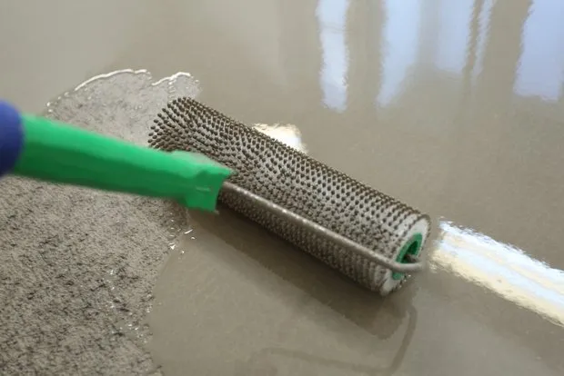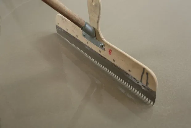 使用钢抹刀或凯林刀将材料均匀铺开,找平并抹光。3-4小时后可行走,1-3天后可铺设地板。