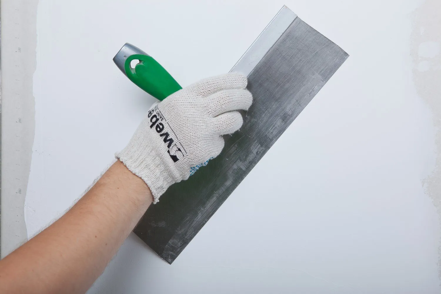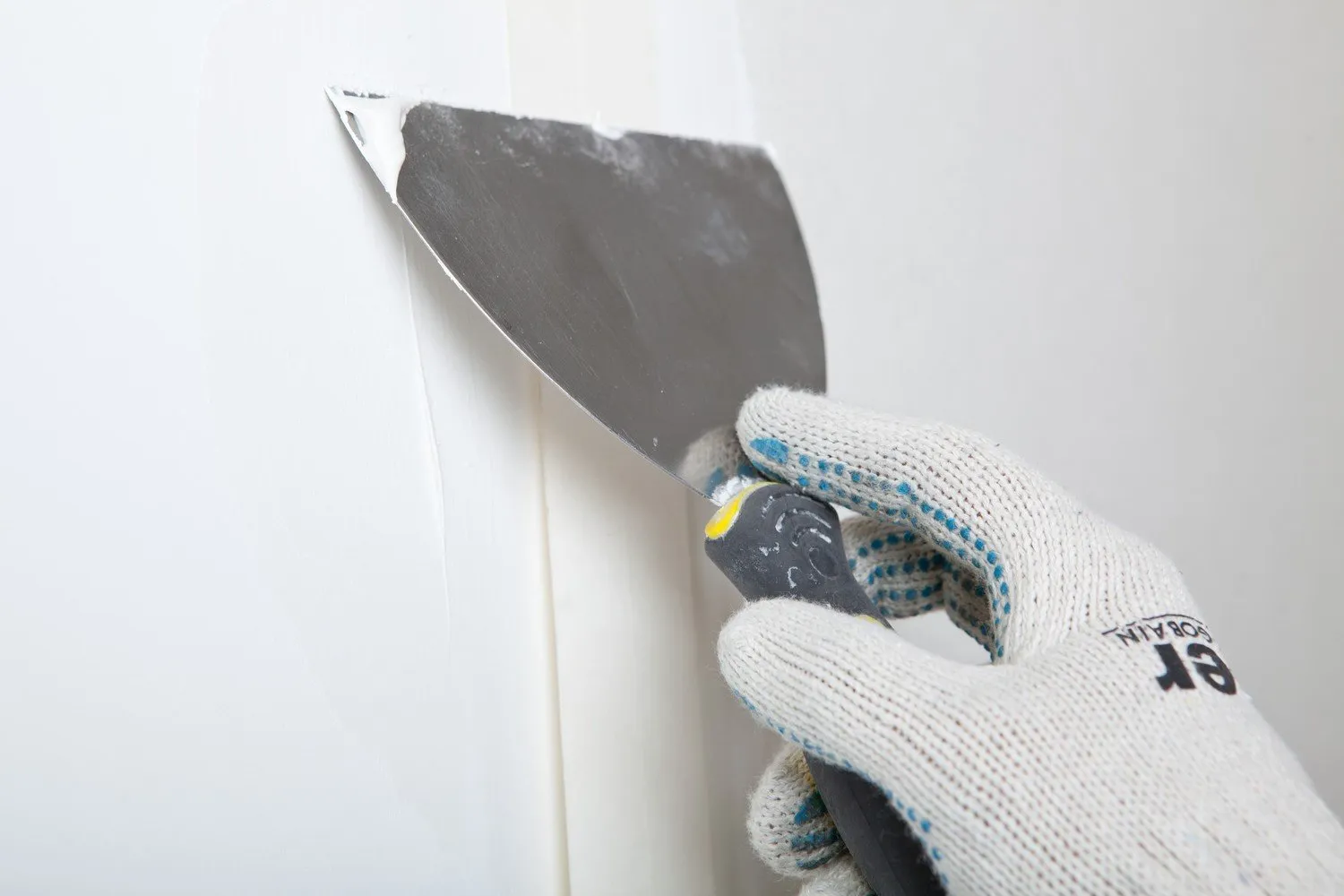 3. 使用宽而硬的刮刀彻底找平接缝,以获得光滑表面。待混合料干燥后,使用细砂纸打磨接缝。