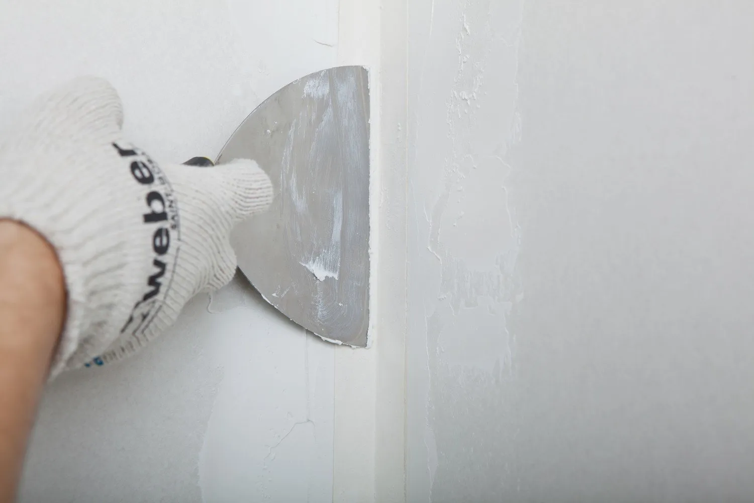 清除影响粘结性的物质——油脂、灰尘、剥落的油漆。基层必须干燥。在石膏板表面,检查螺钉头是否超出纸面。如有必要,请拧紧。