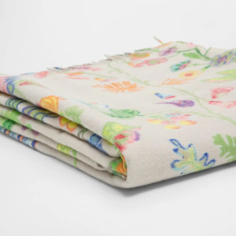 画面已说明一切:宁静的夏夜,每个人坐在开放露台的餐桌旁,河风清新,您想要披上什么。专为此刻而设计的花卉图案羊毛毯正是如此。