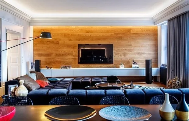 应该指出的是,蓝色室内设计并不罕见。设计师喜爱这种颜色,因为它的轻盈、清新以及让人联想到温暖南方天空的回忆。大多数装饰师以敬畏之心对待深蓝色,但很少有人敢于将一个房间完全涂成深蓝色。
