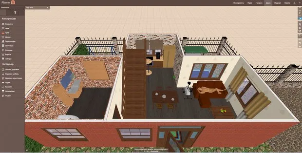 一个任何人都能理解的便捷程序。如果你是设计初学者,最好先查看“帮助”标签。这里有教程视频、设计和装饰的基本原则。在学习材料后,你可以自信地进入“实战”。你可以在没有注册的情况下在程序中工作,但如果你想保存你的结果,你需要注册。在2D模式下工作更方便,而3D模式有助于直观地看到一切在现实生活中会是什么样子。