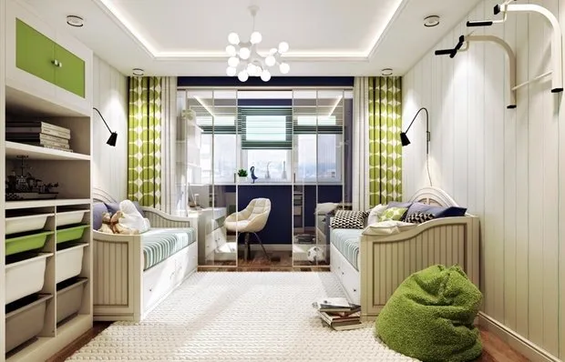 随着孩子的到来,家庭通常会有更多物品。我们建议更高效地利用走廊区域:在过道衣柜中可以存放儿童用品、运动器材,甚至自行车。房间内仅保留书架或书籍和教科书的橱柜。父母卧室也设置了一个衣柜。客厅区域移至厨房,用餐区则移到保温阳台。