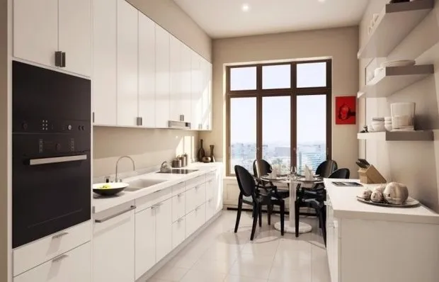 专家观点:这是最昂贵的改造选项。如果您的公寓在一楼,您可以将厨房移至任何位置——您下方没有邻居。然而,您需要合法化燃气管道断开和电力安装。需要任何具备相应SRO许可证的项目组织提供的布局图和工程结论。