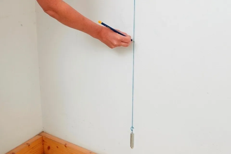 从其中一个角落开始标记墙面——最好是不方便的那个。轻松的工作最好留到疲劳时再做。在墙上画一条垂直线,距离角落等于壁纸条的宽度——它将作为第一张壁纸的引导。