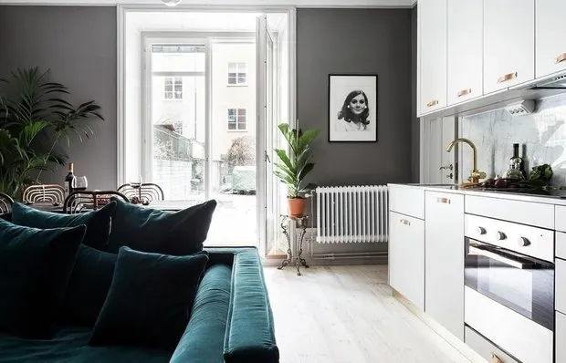 这个位于斯德哥尔摩的时尚公寓面积仅为38平方米。然而,得益于相当开放的布局、精心的空间划分和装饰设计,这个空间在视觉上显得明显更为宽敞。
