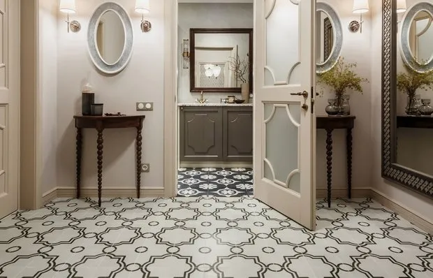 有趣的是,设计师避免了在室内使用鲜艳的色彩点缀。在小空间中,彩色点缀往往会在视觉上使区域显得拥挤。相反,项目作者专注于色调、质感和图案,并通过黑色厨房橱柜和整洁的深色细节在整个公寓中调和了整体色调。