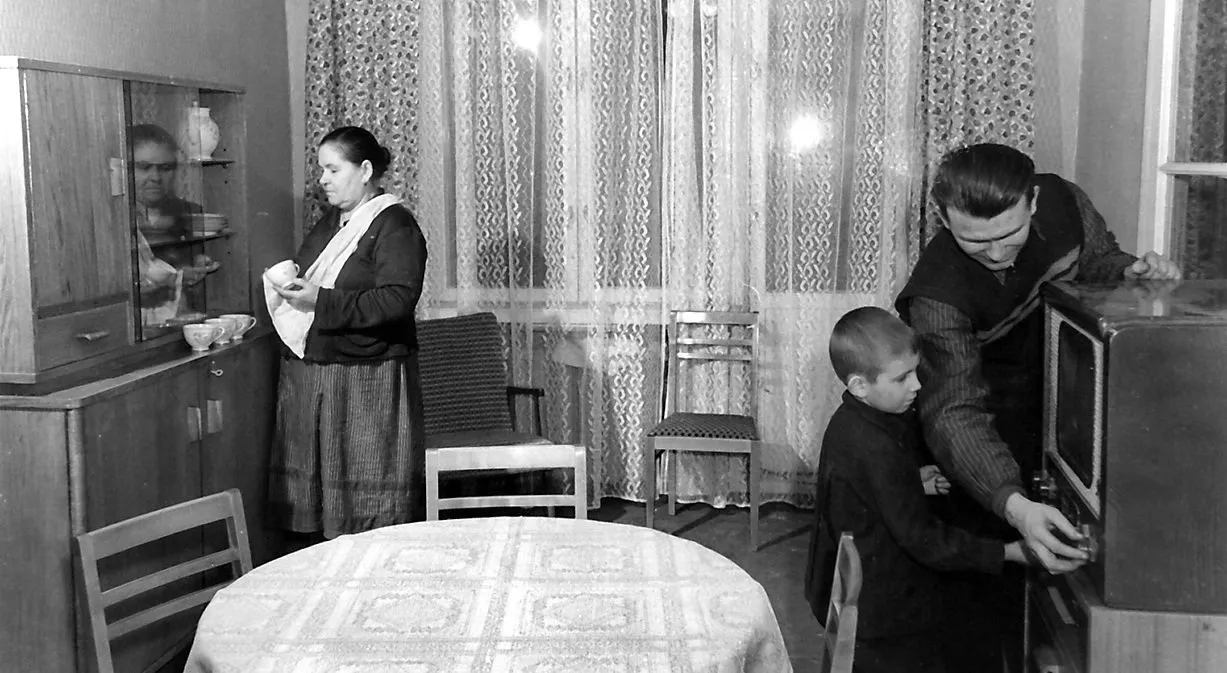 在1960年代的一部纪录片中,莫斯科的主要建筑师约瑟夫·洛维科向未来的居民保证,14平方米(两居室公寓公共房间的面积)的空间足以容纳一个四口之家的家具。