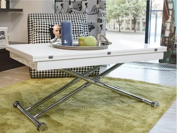 一款咖啡桌-转换桌对于小公寓来说是一大发现。看电影时,饮品和零食总能轻松拿到。而且举办派对时也不需要费心安排客人就座——只需轻轻一动,它就能变成餐桌。节省空间和金钱的效果显而易见。