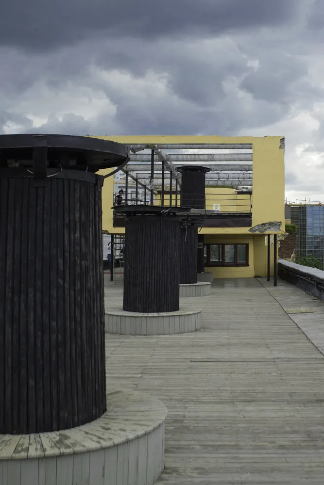 创新之处:公社住宅旨在彻底改变其居民的社会和家庭生活方式。女性不再需要守在炉灶旁:家庭用餐被定时的集体餐厅用餐所取代。因此,在住宅单元中只保留了“厨房元素”——嵌入橱柜之中。在屋顶,莫伊西·金兹堡设计了一个温室——考虑到莫斯科的天气状况,这是一项颇具争议性的创新。
