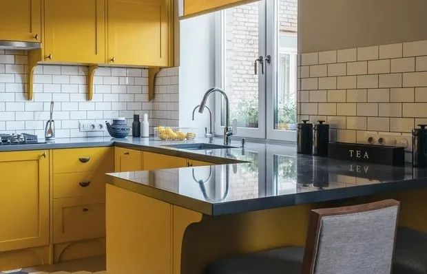 一个有趣的设计细节:浴室地板铺贴的是街道铺路砖。厨房后方墙面和炉灶附近墙面上也使用了相同瓷砖。这种纹理丰富、耐潮湿和温度变化的地板。